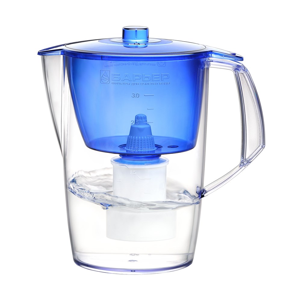 Популярная, доступная модель кувшина с большим объемом отфильтрованной воды. Имеет календарный индикатор замены кассеты и удобную ручку. Уникальная конструкция воронки защищает от выпадения крышки. Кувшин изготовлен из высококачественного пластика BASF, допущенного для контакта с питьевой водой. Поставляется со сменной кассетой БАРЬЕР Стандарт.